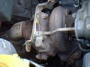 次にフロントパイプの取り外しです。パイプはタービンに5本のナット、パイプの中間部でエンジンと1個所、下端でマフラーにそれぞれ固定されています。